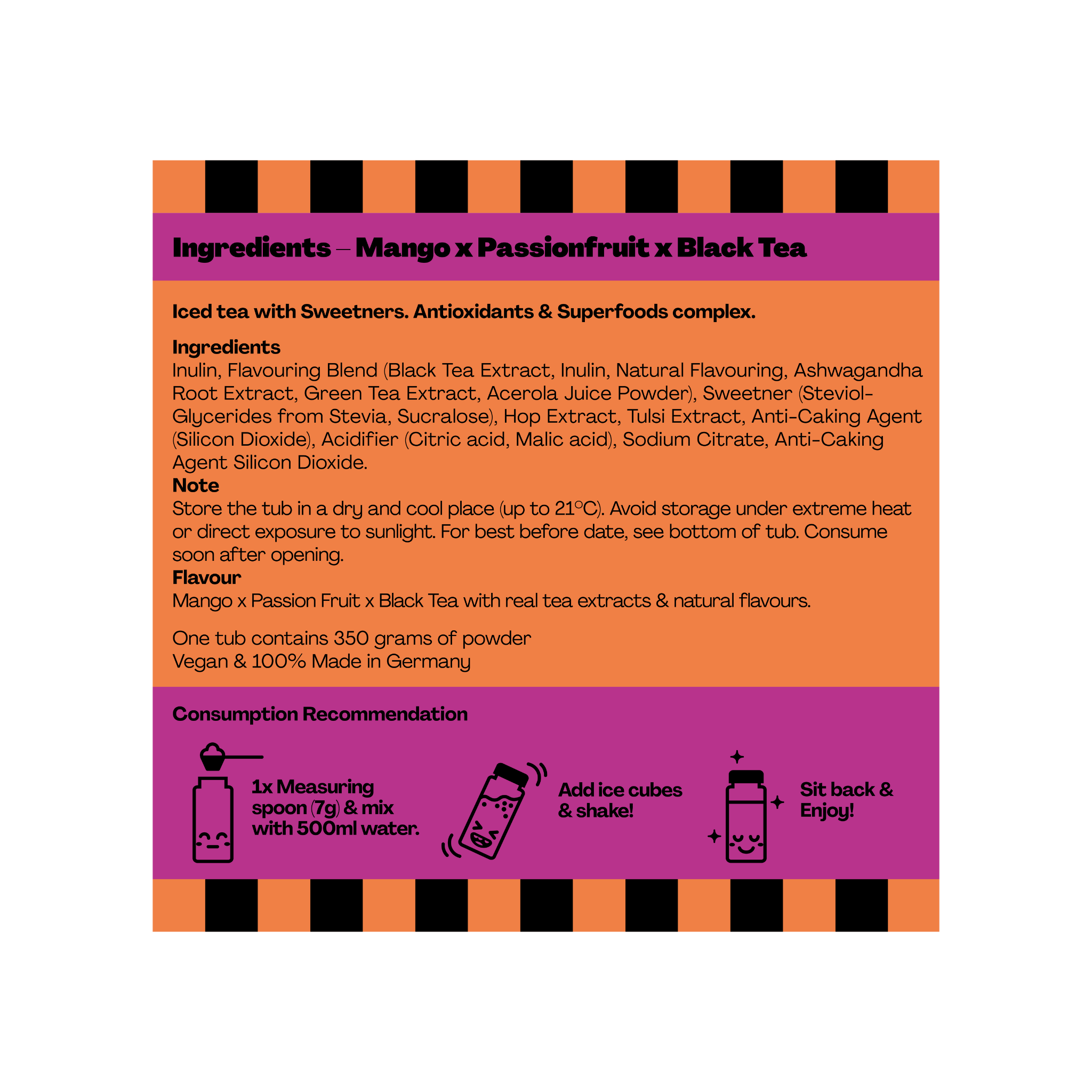 Discover the sweetness of ripe mango and the slightly sour freshness of passion fruit - perfectly rounded off by the real black tea base. Every sip is a tropical adventure.