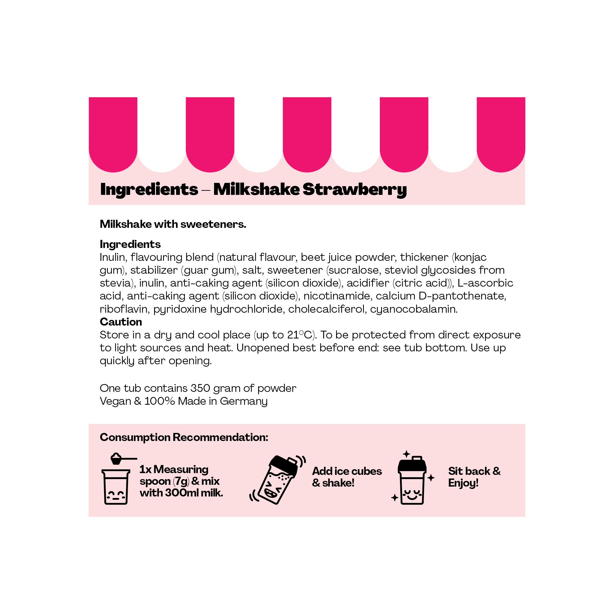 Strawberry explosion: Treat yourself to an all time favourite milkshake flavour. Sweet & Juicy Strawberry!